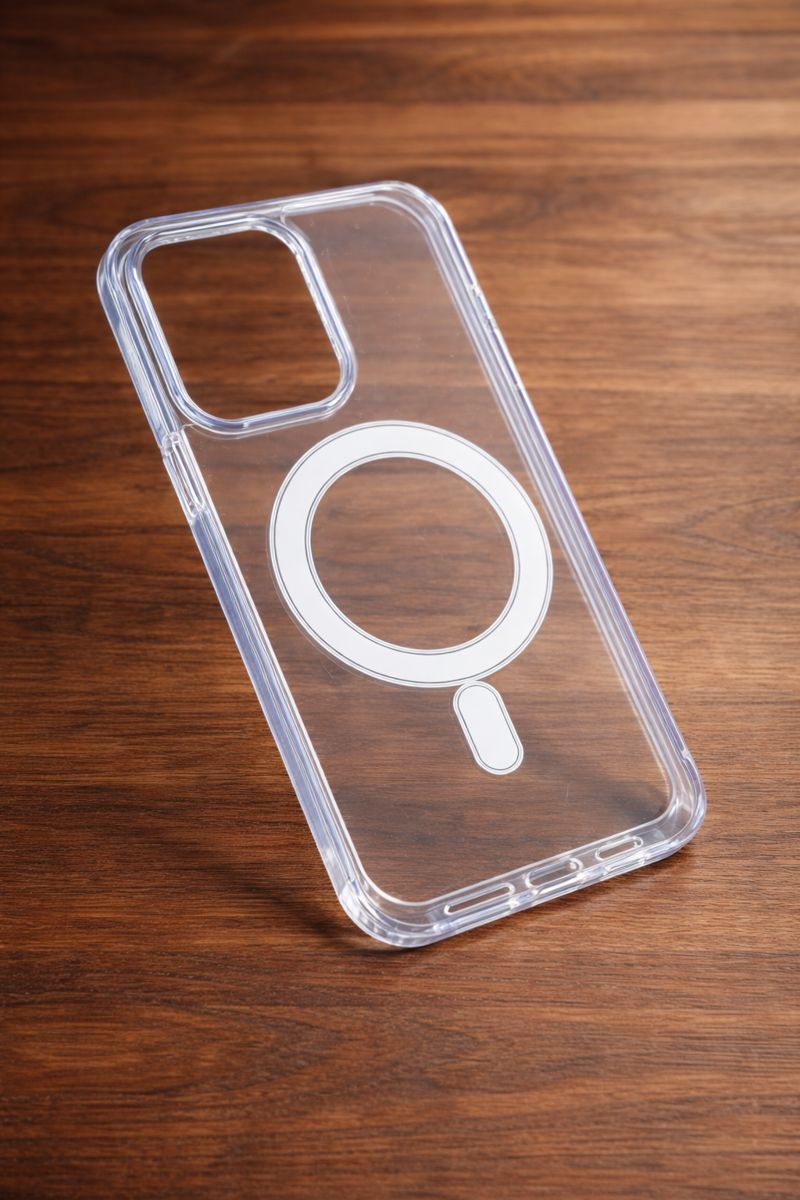 Crystal clear MagSafe case for iPhone 15 with strong magnetic support, slim design, precise cut-outs, and reliable everyday protection.